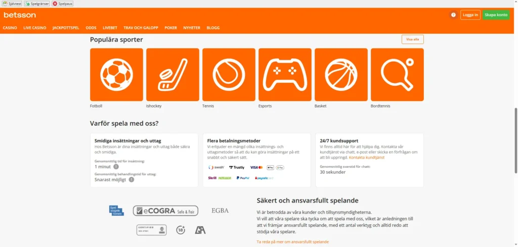 Betsson betting snabba fakta
